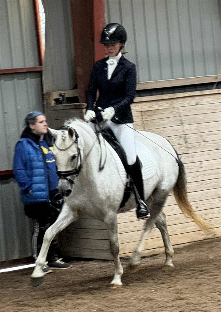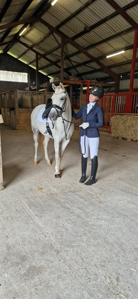 Hun er først blevet tilredet i jan. 2025 så er derfor ikke aldersmæssigt uddannet, men pga. hendes ridelighed og vilje til at please sin rytter, går det hurtigt med at uddanne hende.