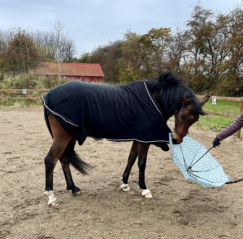 Lige nu går han i blandet flok med hopper og vallaker og er nem i flokken. Sød og social personlighed både med andre heste og med mennesker, kommer en tit i møde på folden og vil altid gerne snakke og hygge og meget gerne være i centrum.