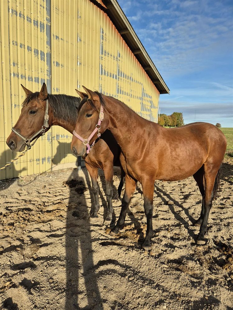Jeg importerede hoppen Maga De La Luna sidste sommer fra Spanien hvor hun var drægtig. Moren har et super temperament og det samme gælder Vaya som er meget nysgerrig på nye oplevelser.