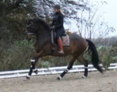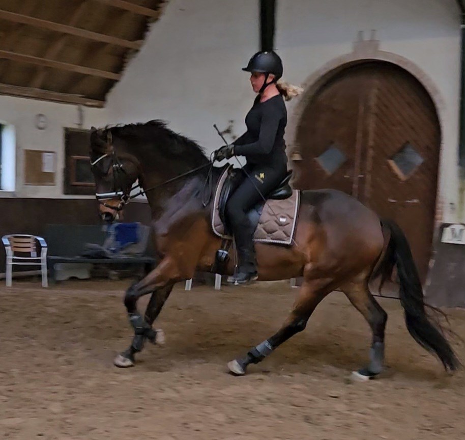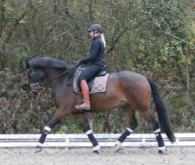 Er utrolig lærenem, sat korrekt sammen og gør sit bedste. Går stabilt i alle gangarter, introduceret for kontragalop, sidebevægelser samt snust til changementer.