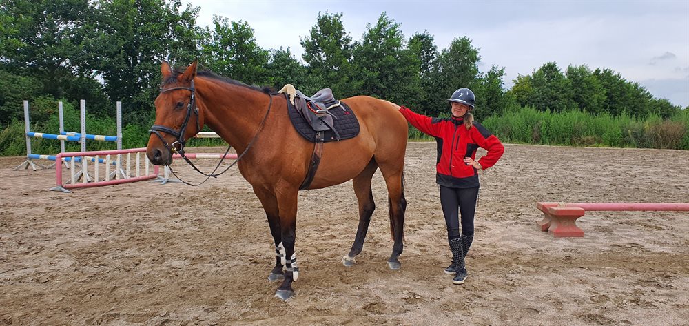 Lækker sød veluddannet springhoppe, som også er godt uddannet i dressur.