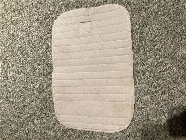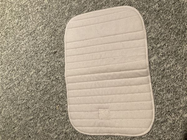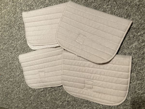4 hvide bandageunderlag, kan ikke huske mærket. De er brugt på en hest på 160 cm.