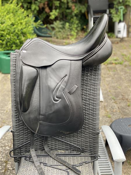 Sadlen er købt i 2021 hos forhandler men er ikke brugt de sidste 2 år pga. køb af anden sadel. Sadlen har hængt hjemme i opvarmet rum. Sælges kr. 9.500,-