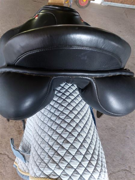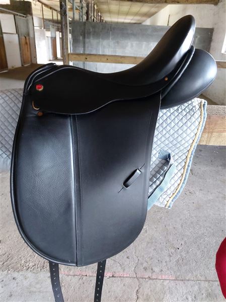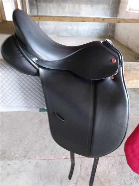 Albion SL W 17" dressur, 4 år (som ny) brugt max 5 gange pga. skadet hest. Har altid hængt indenfor. Et lille mærke på bagsvitsel (se foto) Prisside kr. 8.800,- eller realistisk bud.