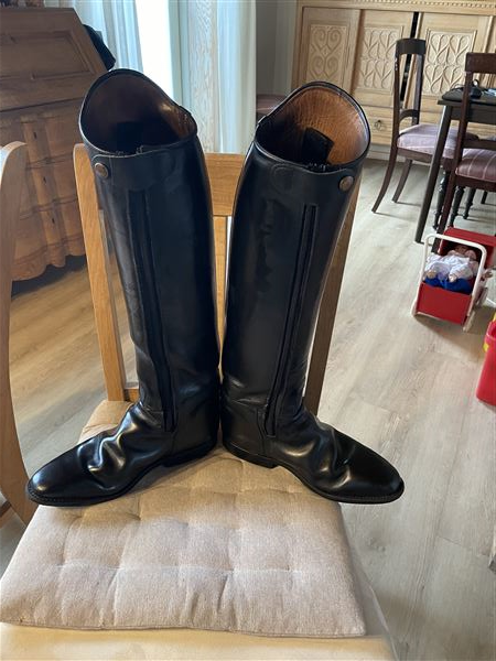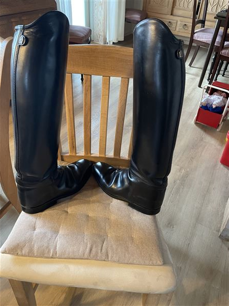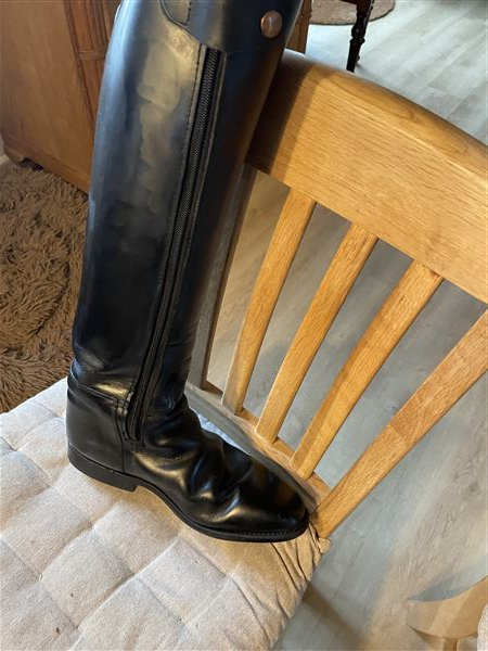 Intakte dressurridestøvler sælges, med lynlås indvendig foran str.7 læg 36 og højde 51cm.