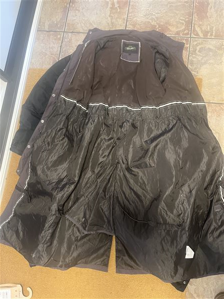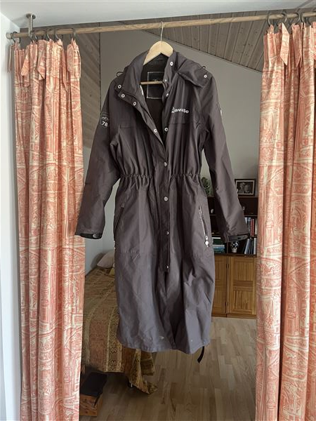 Uundværlige velcrostropper til låret, så frakken kan åbnes helt.