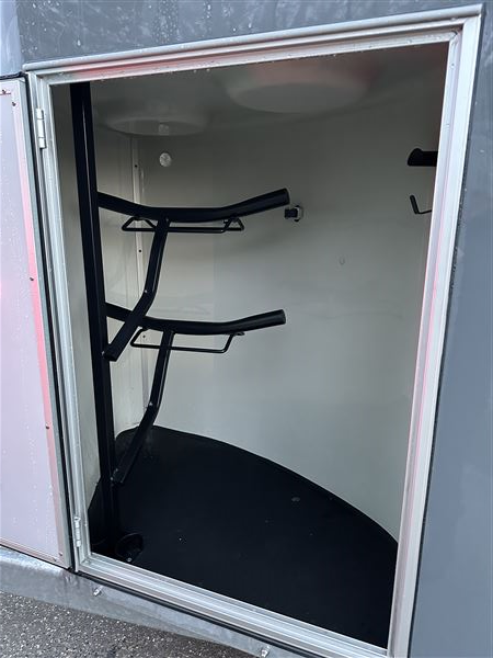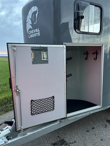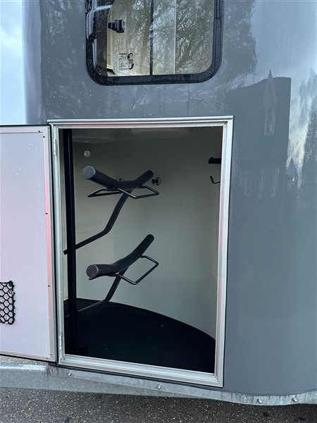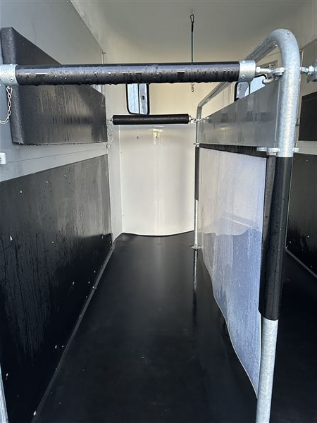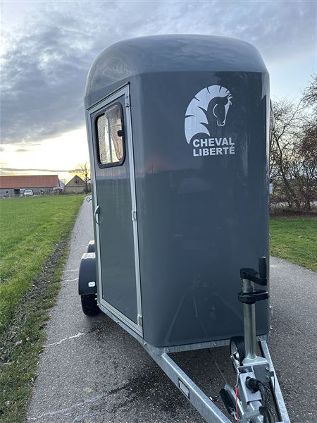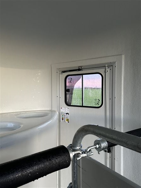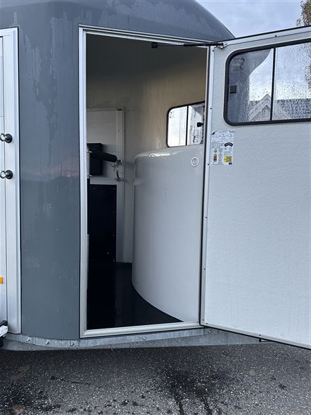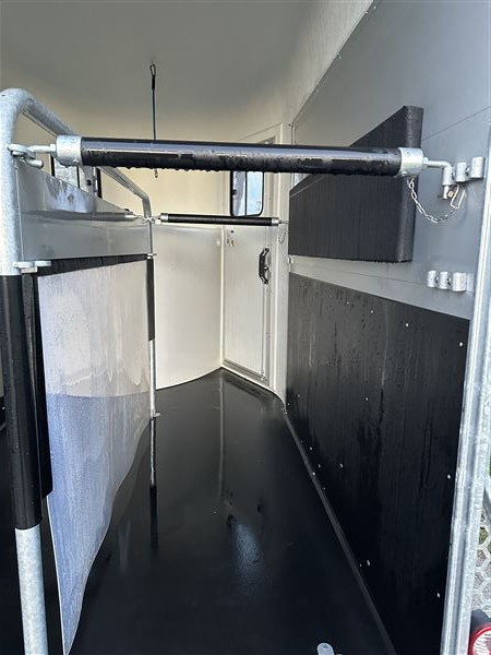 Super fin trailer næsten ny fra januar 2025. Det er den nye model og med ekstra udstyr som høje sparkeplader, rillet gummirampe, multirampe, alu bund, 2 skydevinduer i sikkerhedsglas, automatisk næsehjul, stor rytterdør med lås, sadelrum med plads til to sadler.