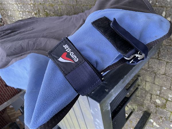 Euro-Star fleecedækken i en flot lysblå og brun farve. Str. 155 cm. I Euro-Stars virkelig gode kvalitet. Brugt ganske lidt og i rigtig god stand!