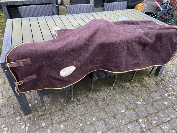 Totti ulddækken str. 145 cm. Brun med guldspænde og guldjagt. Meget flot og meget tykt dækken i god kvalitet. Rigtig god stand bortset fra hvide hår på, men kan selvfølgelig fjernes (det må køber selv gøre, derfor fornuftig pris).