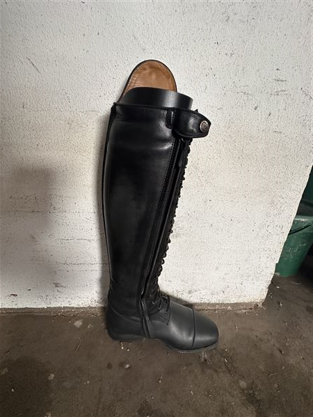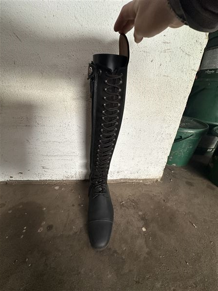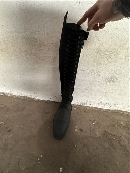 Dressur støvler sælges, kun brugt til stævner. Skaft er af ruskind og snører foran.
