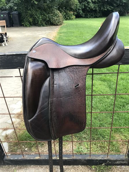 Kvalitetssadel sælges Paul Fielder et engelsk mærke. Dressursadel 17,5 tommer str W i bomstørrelse. Kan ændres i bom. Ligger godt på flere hestetyper. Dejlig sadel at ride i med god støtte til rytteren. Ikke stor i sædet svarer ca. til 17 tommer. Sælges da hesten er solgt.