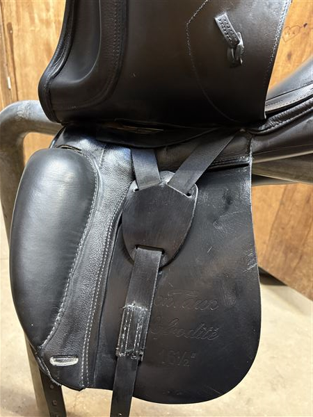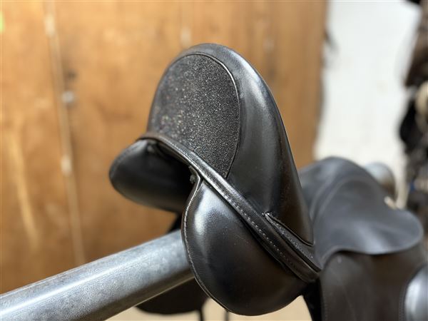 Kentaur Afrodite er opbygget på en dybt bomtype hvilket giver et dybt sæde og plads til en markeret manke - Sadlen har god stor knæstøtte til rytteren. Sadlen er uldstoppet. Sadel er købt direkte fra sadelmager i 2024.