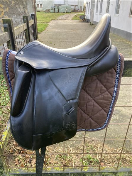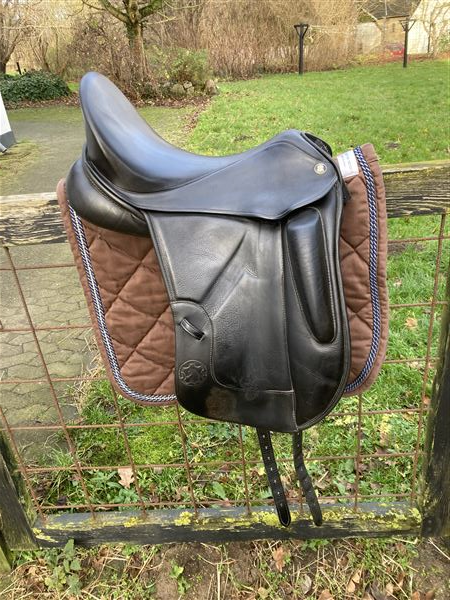 Hennig dressursadel sælges sort 17 tommer med knæstøtter der kan justeres. Sadlen er jævnligt serviceret af Hennig. Sidst i oktober 2025. Sadlen passer hest med markeret manke med medium bom. Sadlen har mindre kosmetiskfejl øverst på knæstøtte.
