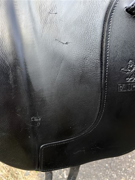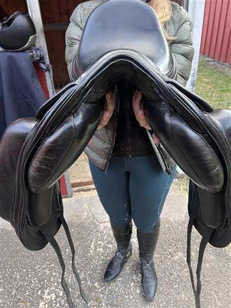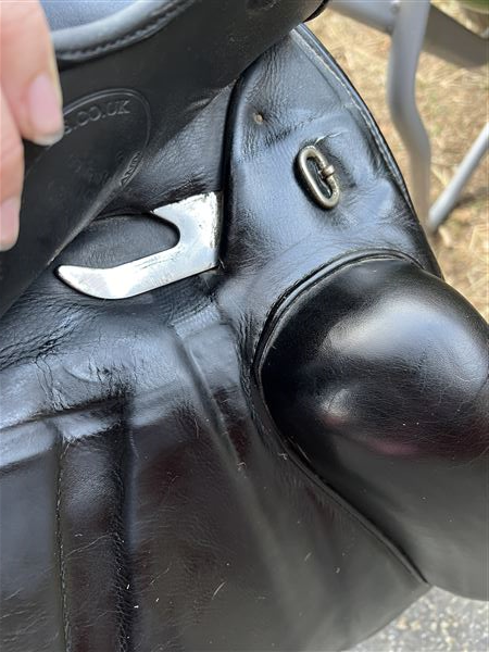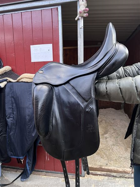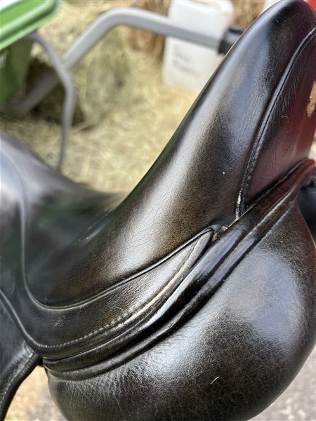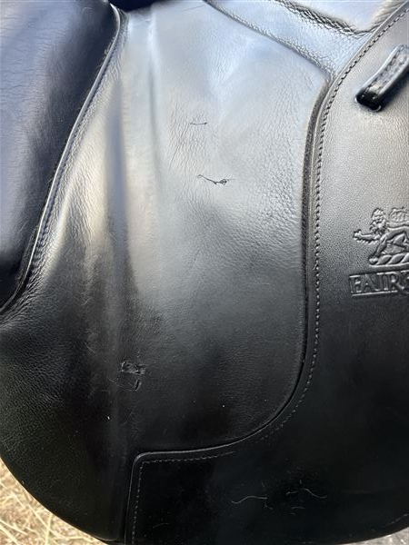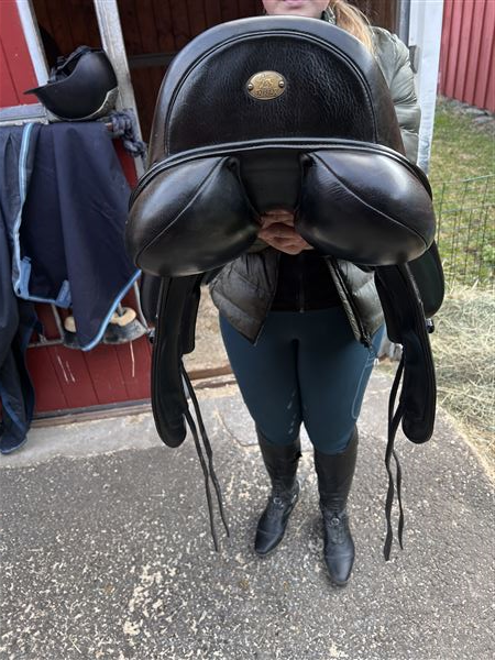 Den har noen riper på ene siden etter at hesten falt med den på men ellers fin. (Synes ikke under ridning, se de 2 siste bildene)