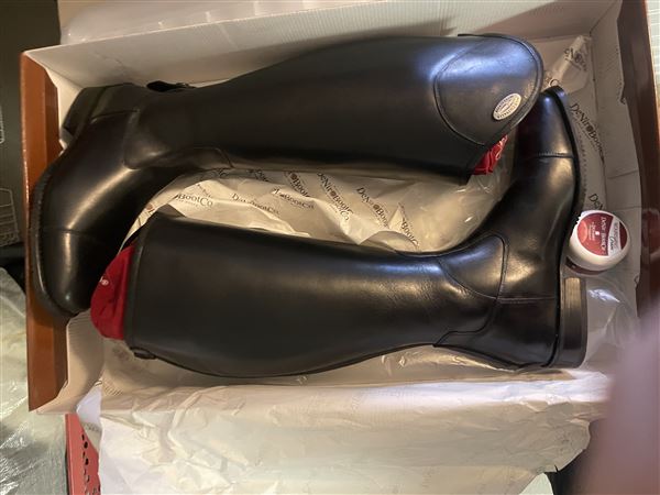 Dressurstøvler fejlkøb, aldrig brugt. Original æske. Til brede lægge (41cm omkreds)