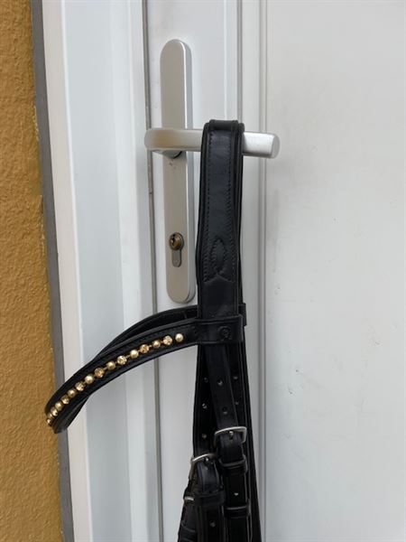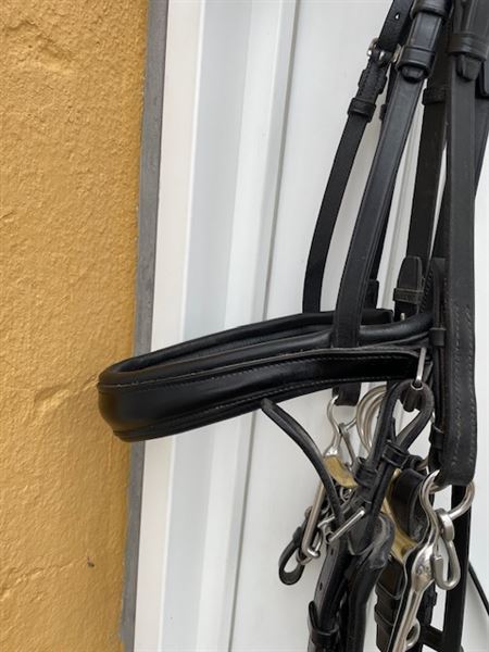 Kandaren er fra Hubertus, sælges med det originale sorte pandebånd. Har et fint næsebånd som bliver smallere ud mod bidene, så der er ekstra plads.
