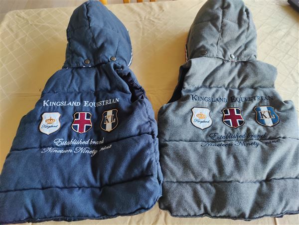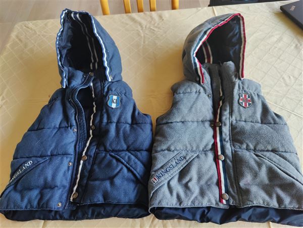 Kingsland veste. Den ene grå og den anden blå. Begge med hætter. Ældre men i god stand. Str. 98/104