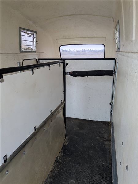 Min trailer er en rummelig og meget velholdt Brenderup Imperial Exclusive hvor både forbomme og bagbomme kan indstilles i 3 højder. Den er således god til både ponyer og heste. Dog ikke heste over 172 cm/stg, da de får den bedste oplevelse i en højere trailer.
