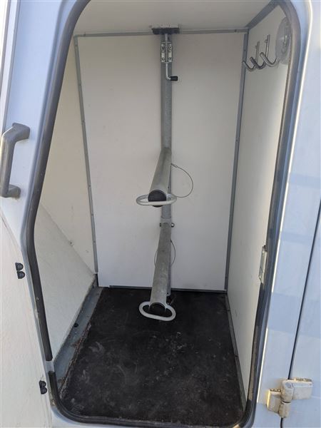 Indvendig højde er 220 cm, så ikke egnet til heste over 172 cm.