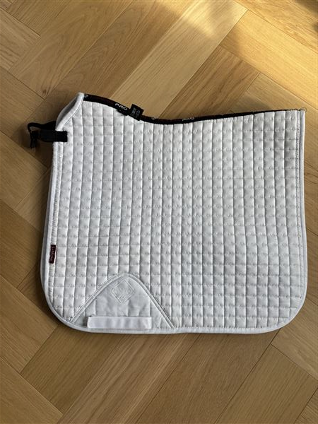 Fint stævneunderlag med ruskindsoverflade. Nyvasket men med uundgåelige hår på inderside. Str L.