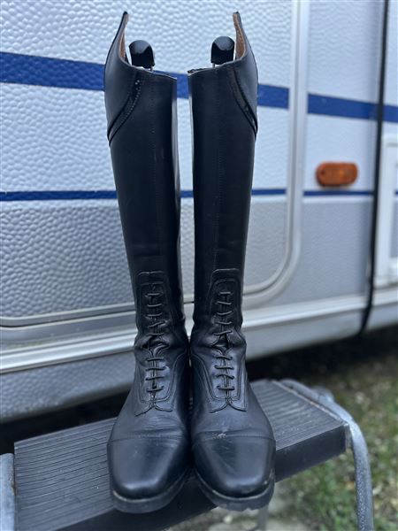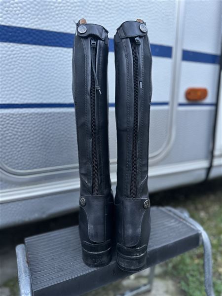 Super fine og ikke særlig brugte ridestøvler fra mountain horse. God kvalitets lynlås, og generelt en fin støvle. Sort læder. Størrelse 38 S/N, så svarer til 42 cm i højde og 32-35 cm i lægbredde. De er med elastik så de tilpasser sig rytterens ben. Genial at købe til den unge rytter som alligevel vokser ud af dem om lidt - du får en næsten ny støvle, men til næsten 1/3 af prisen :)