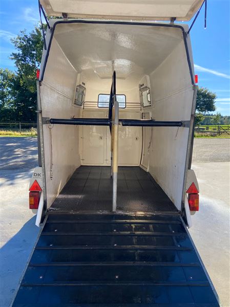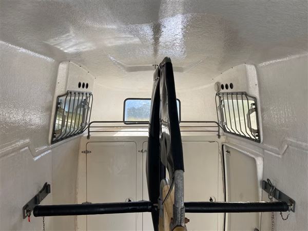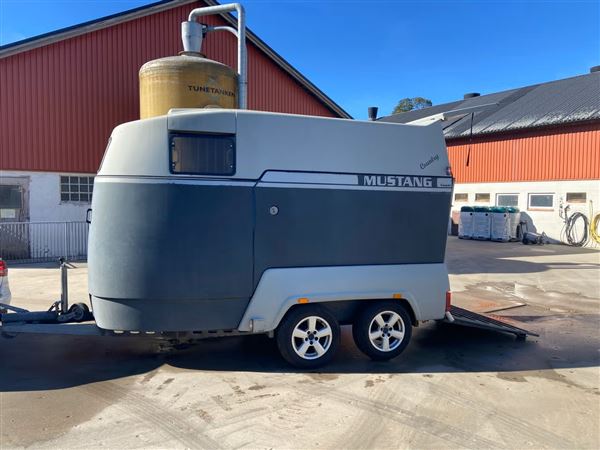 Nysynet (31.10.25, ikke kørt siden) Mustang hestetrailer med glasfiberbund, sadelskab og ekstra garderobeskab. Limited edition i 2 farvet special version, pæn og velholdt. Nye dæk. Kun 3 private ejere siden første indregistrering i 1999. Totalvægt 2000 kg. 775 kg egenvægt. Medfølger trailerlås og hingsteafskærmning der let kan af- og påmonteres. Sælges pga. ophør med heste.
