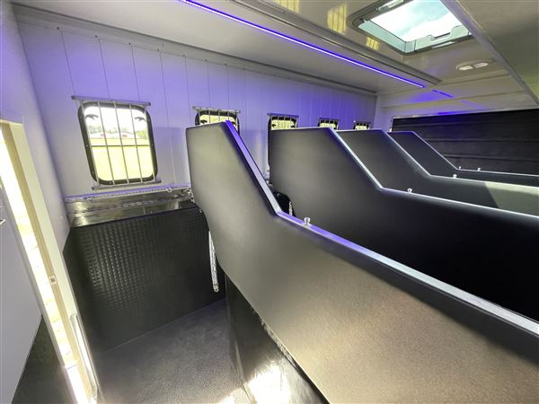 Plads til5 heste stort rum til udstyr og 4-5 sovepladser.
