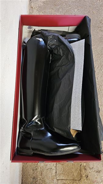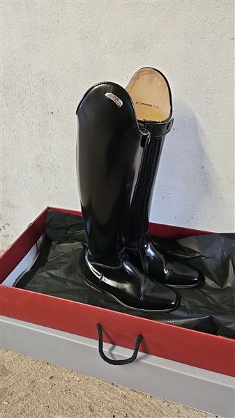 Utrolig flotte Parlanti dressage boots i fin brushed sort læder med lynlås og elastik