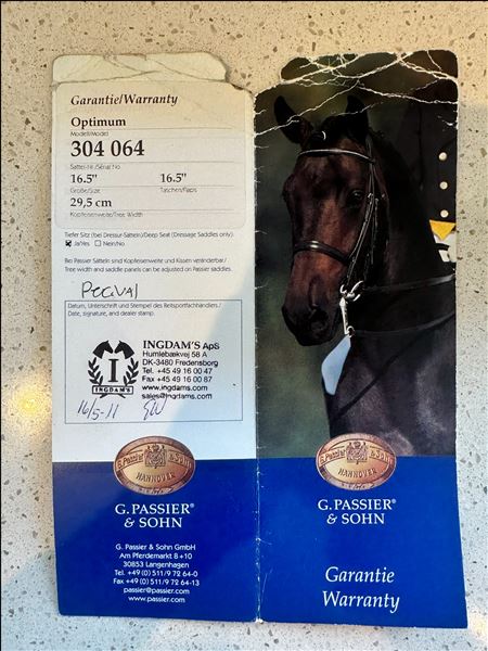 Rigtig lækker Passier Optimum med rigtig god støtte til rytteren og gode store knæpuder så man altid sidder godt.