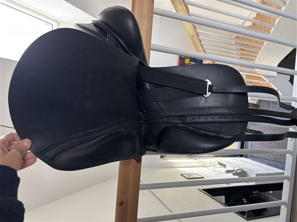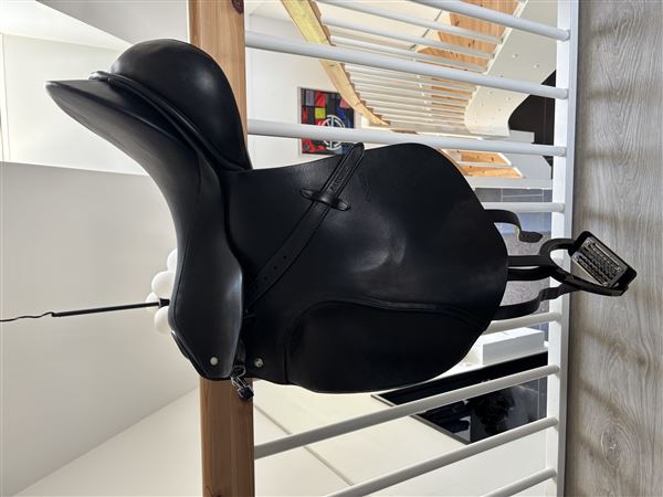 Pæn og velholdt dressur sadel, dog enkelte ridser i sædet, dette uden betydning