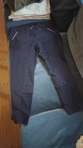 Et par navy/mørkeblå Ridebukser fra Firmaet Celbes sælges i størrelse 48