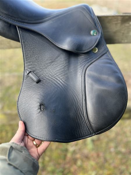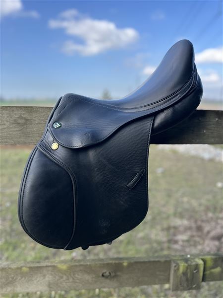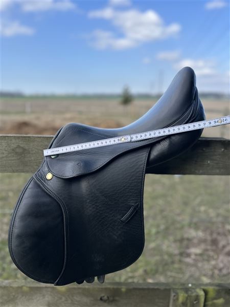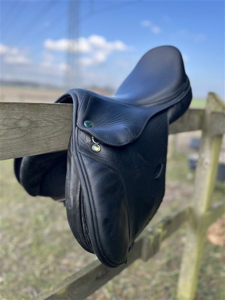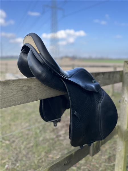 Fantastisk lille ponysadel sælges da jeg ikke længere har ponyen. Sort kalvelæder som giver god grip, justerbare knæ og lægstøtter som også kan udskiftes hvis man fx vil have mere støtte - jeg har bl.a. brugt dem fra bates i stedet, men de originale sidder på nu og følger med sadlen. Bomstørrelsen er MW og kan justeres ved sadelmager, forreste gjordstrop er rykket frem som gør den ideel til ponyer hvor sadlen har tildens til at glide frem. Kort anlægsflade. Sadlen har dog noget slid hvor der er slidt igennem kalvelæder og ned til det slidbare læder, men det har ingen betydning for brugen andet end udseende. Der kan medfølge bøjler og remme hvis det ønskes - muligvis også en trense i sort.