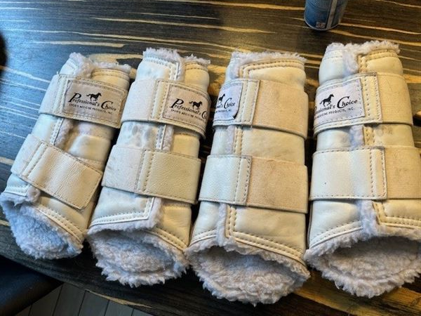 Professionel Choice Gamacher med plys/ lam. Str. M passer en stor pony eller en hest med ikke alt for tykke ben. De er bugt 5-6 gange, men har fået lidt pletter, dog ikke noget man ser på afstand og de er ellers som nye