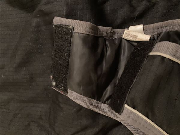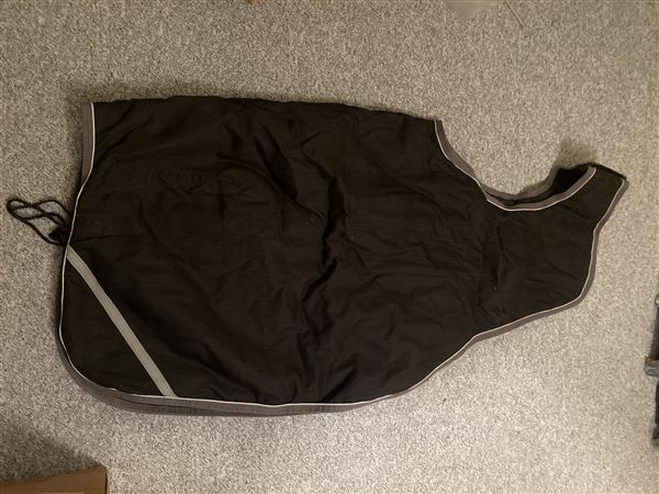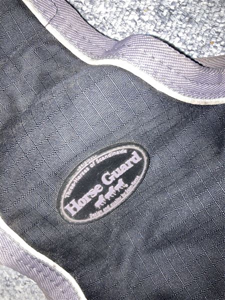 Rigtig fint og praktisk ridedækken fra Horse Guard, som er vandafvisende. Brugt, men fejler intet. Det er sort og i str. L (har passet hest, som er str. 145 i normale dækkener). Lukkes med velcro.