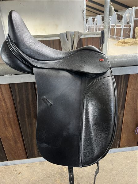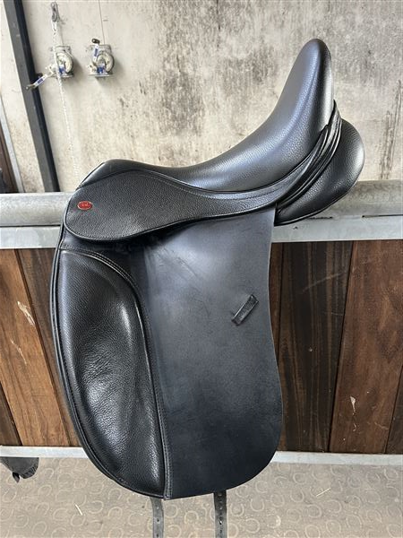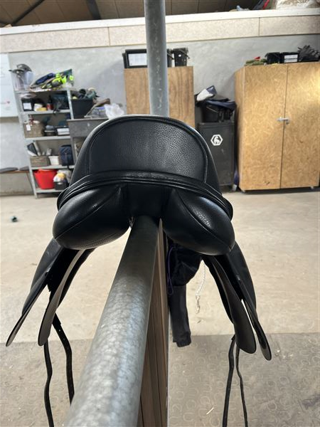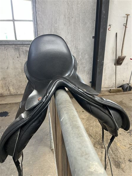 Pæn og velholdt saddel 1,5 år gammel sælges med rødt kofjern som er til den brede sidde, kan nemt skiftes ved Sadelmager eller så kan man selv gøre det. Sælges da den ikke lægger godt på hesten.
