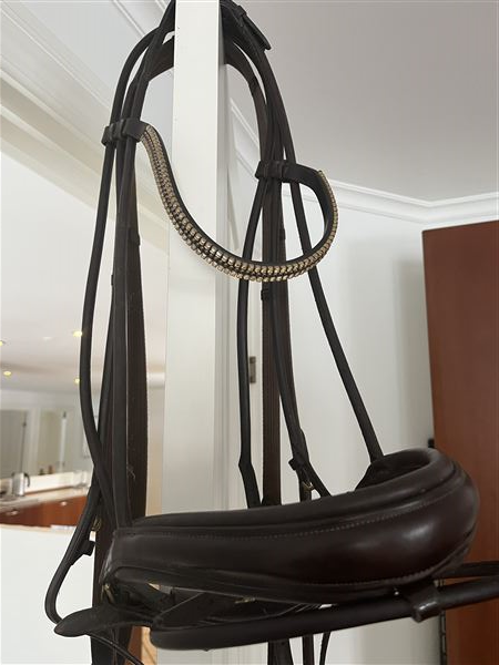 Schockemöhle rundsyet trense i farven brun brugt sparsomt