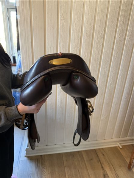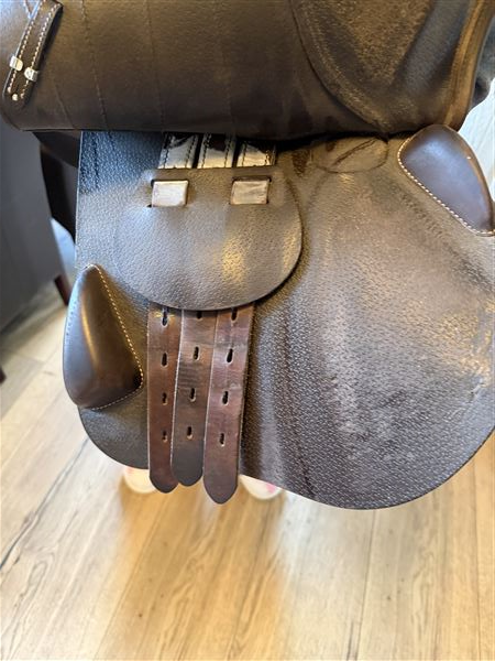 Springsadel købt fra ny i 2023, brun, sadlen ligger godt ned til hesten, du føler hestens bevægelser
