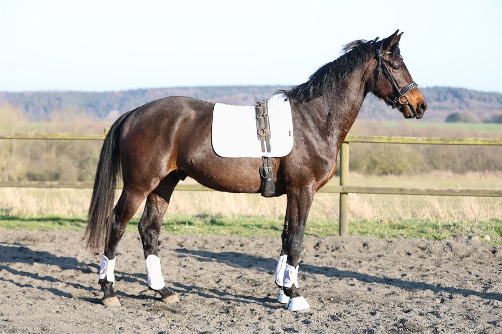 Han er yderst samarbejdsvillig og cool og går direkte i trailer, kan vaskes, klippes, står pænt ved smed, kan longeres og sadles op.