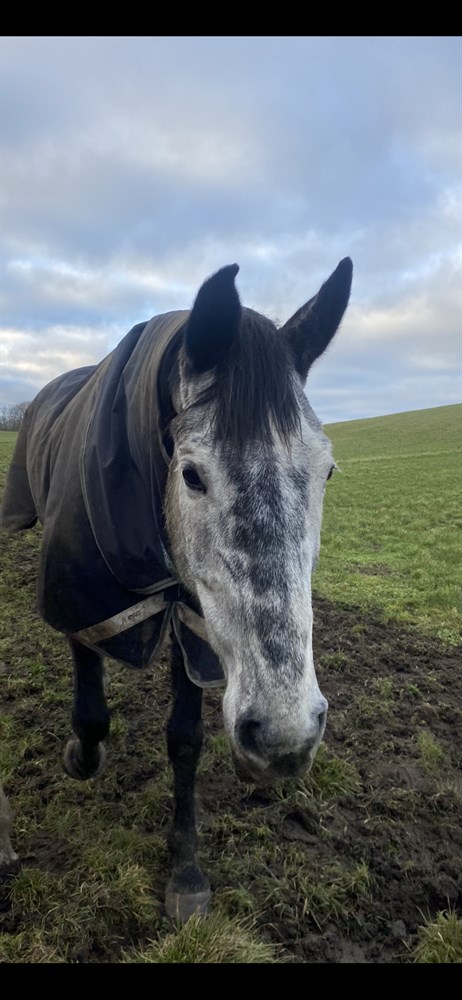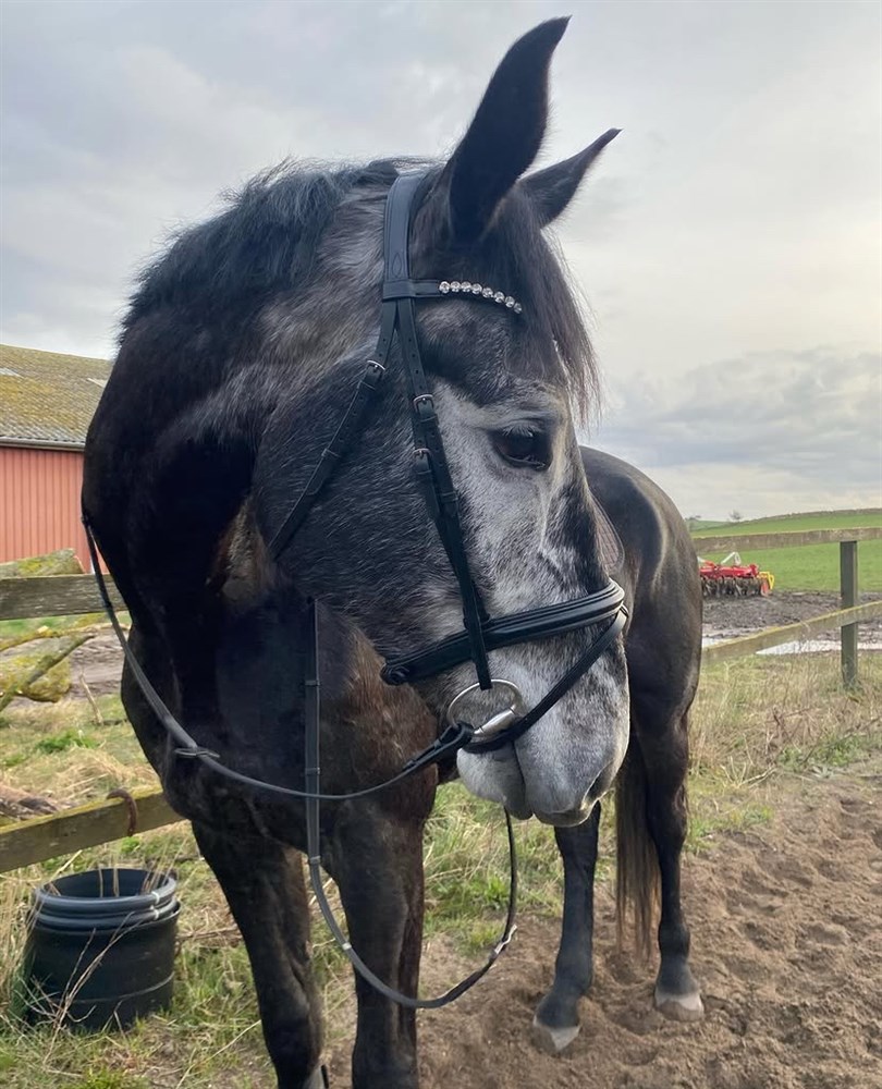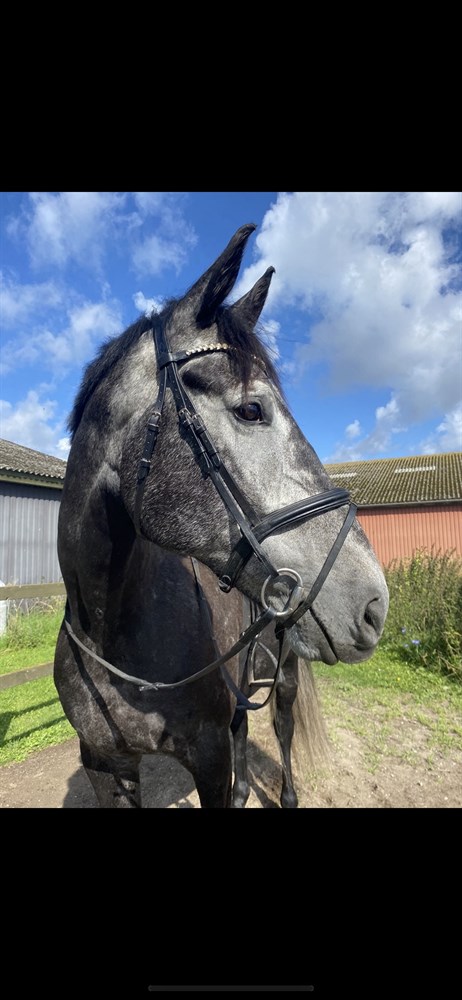 Udviklede astma i vinteren 24/25 efter en periode med ikke optimalt hø. Han hostede, men havde på intet tidspunkt præstationsnedsættelse, og blev redet normalt hele tiden. I april 25 fik vi ham endoskoperet og lavet trachealskyl og han er allergisk overfor svampesporer. Han havde et behandlingsforløb og har siden været symptomfri. Han går i løsdrift hos os, og vil helt sikkert trives bedst med dette eller udeboks. Det vigtigste er dog, at der kan tages hensyn til hans allergi for svampesporer, hvis han skal stå på stald.