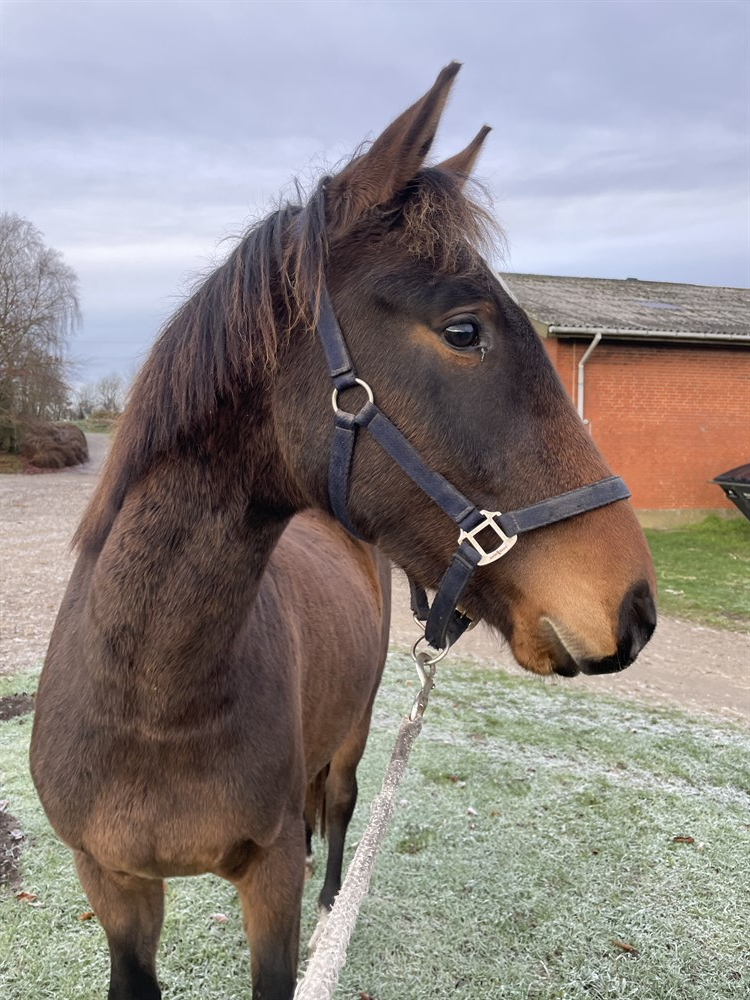Han har prøvet at have sadel på hvilket han tog helt cool. Derudover har jeg både haft ham med i skoven, han har prøvet miljøtræning og kørt trailer to gange.